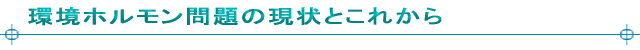 環境ホルモンとは 環境ホルモンは俗称ですが、学術的な名称は「外因性内分泌かく乱化学物質」といい、「生体の恒常性、生殖、発生あるいは行動に関与する種々の生体内のホルモンの、合成、分泌、体内輸送、結合、作用、あるいはその除去などの諸過程を阻害する性質をもつ外来性の物質」と定義されています。欧米諸国では、Endocrine disruptorsあるいはEndocrine disrupting chemicalsと呼ばれています。とくに、米国では1980年代から女性ホルモン(エストロゲン)類似の作用を有する化学物質を環境エストロゲン(Environmental estrogen)として研究が進められていました。環境ホルモンが地球環境や私たちの生活環境に存在し、人や野生生物に深刻な影響を与えているのではないか、という可能性をめぐって議論されているのが「環境ホルモン問題」(または「エンドクリン問題」)です。では、このような環境中の化学物質は主にどのようにして作用を発揮し、どのような種類があるのでしょうか? 環境ホルモンの作用と種類 生物のホルモンには様々な種類がありますが、環境ホルモン問題で中心となるのは、主にエストロゲンや男性ホルモン(アンドロゲン)などの性ホルモンです。これらのホルモンは、ごく微量で生体のある決められた蛋白質(受容体)と結合して作用を発揮します。環境ホルモンも微量でこれらの受容体と結合することにより、ホルモン作用を発揮したり、本来のホルモン作用を阻害(邪魔)して、ホルモン作用をかく乱します。ホルモンかく乱作用が疑われる環境中の化学物質は、農薬や工業化学品が挙げられます。これらの化学物質のほとんどは、ある種の定められた毒性試験により安全性が確認されていますが、ホルモンかく乱作用の観点からは評価されていません。また、ヒトを含む動物由来の天然の性ホルモンや、植物が作り出す天然の物質など自然界に存在する多くの物質についてもホルモンかく乱作用が懸念されています。現在も研究が行われていますが、その種類はかなり多数に上ると考えられています。環境ホルモンとして疑われている物質をグループ分けしてみると以下のようになります。(1)農薬、(2)工業化学品、83)ダイオキシン類、(4)動物由来の天然の性ホルモン(環境中に排出されたホルモンは、他の動物に対する環境ホルモンとなり得る)、(5)合成エストロゲン(医薬品として合成されたエストロゲンの類似物質)E植物エストロゲン(植物の中にあるエストロゲン類似物質で少なくとも20種類が知られている)Fその他の化合物。 環境ホルモン問題の現状 環境ホルモン問題に関しては、過去の環境問題に対する反省から政府の反応は素早く、その対策に多額の費用を投じて調査・研究が開始されました。これまで国内において、環境ホルモンが原因となり、野生生物において生殖異常が認められた代表的な事例としては、以下の2つが挙げられます。(1)「ある川に棲む魚がメス化している」(2)「近海に棲む巻き貝のメスがオス化している」という現象です。(1)については、汚水処理場から流出したヒト由来の女性ホルモンが河川を汚染していたことが原因となっています。(2)については、船舶の船底塗料に用いられていた有機スズ化合物が原因とされていますが、このことは、1997年よりも10年以上前から知られていた現象でした。有機スズ化合物は、既に1990年頃には船舶への使用が禁止され、現在の近海での汚染レベルは減少しています。ヒトに関しては、臍帯血に多くの環境ホルモンが存在していることや、最近の若者における精子の数・運動率が低下傾向を示すことなどの調査報告があります。また、最近の分子生物学の技術により、今まで分からなかった性ホルモンの作用メカニズムを遺伝子レベルで詳細に説明できるようになったことは大きな成果だといえます。当所でも、ホルモン受容体の遺伝子を細胞に導入して、農薬を中心にホルモンかく乱作用を調べたところ、多くの農薬が複数のホルモン受容体を介して作用することを明らかにしています。しかしながら、10万種類とも言われる身の回りの化学物質が人体のホルモン作用をかく乱し、健康や子孫繁栄に影響を及ぼすか否かについては、依然として仮説の域を出ていません。 今後の課題 環境ホルモン問題は、これまであまり議論されなかった環境中に放出された多くの化学物質について、それらの危険性を考える良い機会になったと思います。「環境ホルモンは人類を滅ぼす!?」という類の過度の心配は必要ありませんが、次世代への影響や膨大な化学物質の種類を考えると、「これは仮説でしたので大丈夫です!」とも簡単には言えません。とくに、胎児期のある時期に女性ホルモン様物質に曝露されると、内分泌系以外にも脳神経系や免疫系に悪影響を及ぼすことが報告されており、成人よりも胎児を含む乳幼児への影響が懸念されています。この点はさらに、研究が必要となるでしょう。化学物質の面から考えると、これまでは女性ホルモン受容体と
