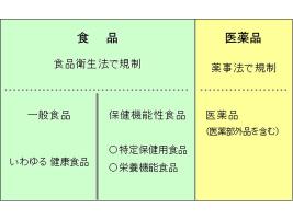 韓国の人気ドラマ「宮廷女官チャングムの誓い」を見たことのある人は、宮中で王に仕える女官たちが王の健康のためにつくる食事を薬としての効果も期待して描かれていたことを覚えていると思います。体調や病気の種類に合わせて様々な食材を巧みに使い分けて料理をつくっていました。主人公チャングムの豊富な知識と向上心、そして主演女優イ・ヨンエの類い希な美貌に魅せられたのは私だけではないと思います。身体によい食材を日常的に食べて健康を保つという考え方は、「薬食同源」という中国の古くからの考え方に根ざしたものです。そしてこの考え方は、今日の健康食品に通じるものがあります。しかし、健康食品のなかには効果を際だたせるために医薬品成分を混入させたものがあり、かえって健康を害する事例が発生しています。健康食品を正しく理解し、悪質な健康食品にだまされないようにする注意が必要です。 健康食品の位置づけ 私たちは日常生活の中でいろいろなものを食べたり飲んだりします。その種類は大きく分けると「食品」と「医薬品」の2種類に分けられます。病気になったときに飲む薬は「医薬品」ですが、これは薬事法によってその有効性や安全性を確保するために必要な規制が定められています。一方、空腹を満たすための食事や清涼飲料水などは「食品」です。「食品」は食品衛生法に必要な規制が設定され、安全性が確保されています。そして、健康食品も「食品」に分類されています。健康食品の中で、国が定めた一定の有効性や安全性が認められたものについては、「保健機能食品」と表示することが認められています。この中には「特定保健用食品」と「栄養機能食品」の二つがあります。「保健機能食品」以外の健康食品は、一般食品と同列の「いわゆる健康食品」として分類されるため、健康に対する効果には特に規定がありません。すなわち、「いわゆる健康食品」については製造者が普通の食品より健康に良いと思った商品を健康食品として販売することになります。