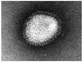 (註・写真のウイルスは直径100ナノメートル。1nmは1mm(ミリメートル)の100万分の1) 新型インフルエンザウイルスとは? インフルエンザウイルスは、構成するタンパク質の種類によりA型、B型、C型に分けられます。このうち新型インフルエンザウイルスはA型ウイルスのみで誕生します。これは、A型ウイルスには多くの亜型が存在するためです。A型ウイルスの表面には、HA(赤血球凝集素)およびNA(ノイラミニダーゼ)という糖タンパク質が突き出ており、16種類のHAタンパク(H1〜H16)と9種類のNAタンパク(N1〜N9)の組み合わせにより亜型が決定されます。例えば、よく耳にするAソ連型はH1N1型、A香港型はH3N2型となります。また1957年に出現し、11年間流行したAアジア型はH2N2型です。通常、人間に感染するヒト型ウイルスはこの3種類のみです。これに対し、カモを中心とした水鳥に感染するトリ型ウイルスには多くの亜型が存在しますが、これらのウイルスが人間に感染することはほとんどありません。 しかし、このような鳥由来のウイルスが何らかの原因で人間に感染し易い性質を獲得するなどして、これまで存在しなかった亜型のヒト型ウイルスが誕生する可能性があります。こうして起こった変異を「大変異(不連続変異)」といい、誕生したウイルスを「新型インフルエンザウイルス」と言うのです。人間はこの新しいウイルスに対する免疫を持たないため、新型インフルエンザウイルスが誕生すると世界規模での大流行が起こり、社会機能が大打撃を受ける可能性が危惧されています。